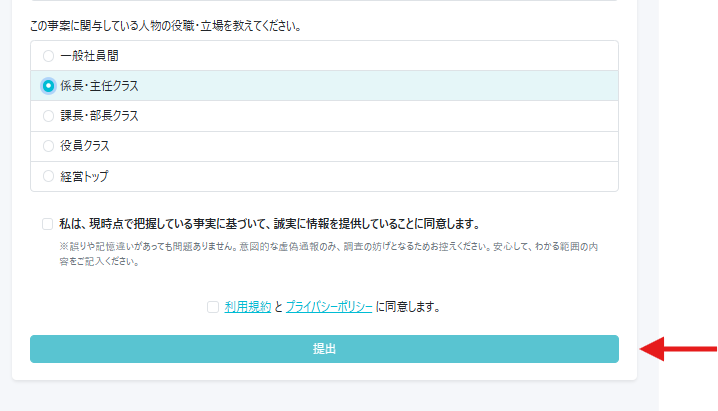報告内容をご確認いただき、内容に誤りがなければ「提出」ボタンをクリックしてください。