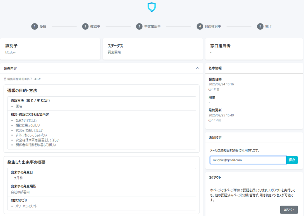報告内容は以下のように表示されます。