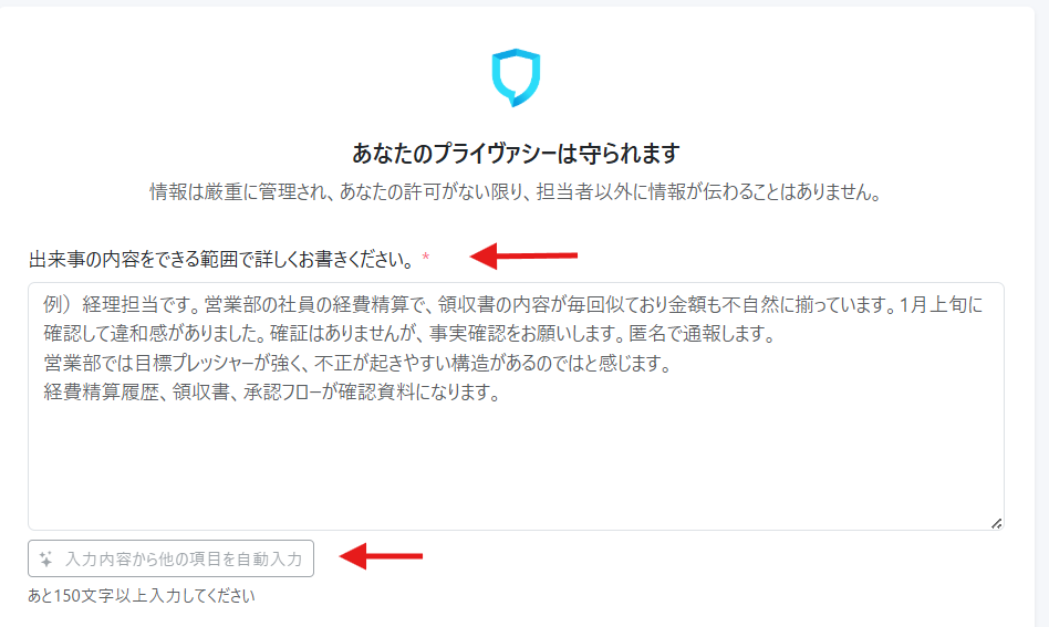 Step 3 | 通報フォームに報告内容を入力する(AIオートフィル機能付き) #