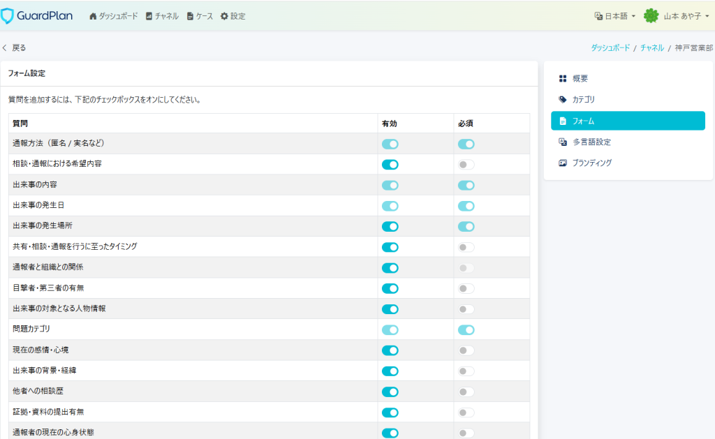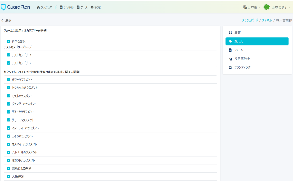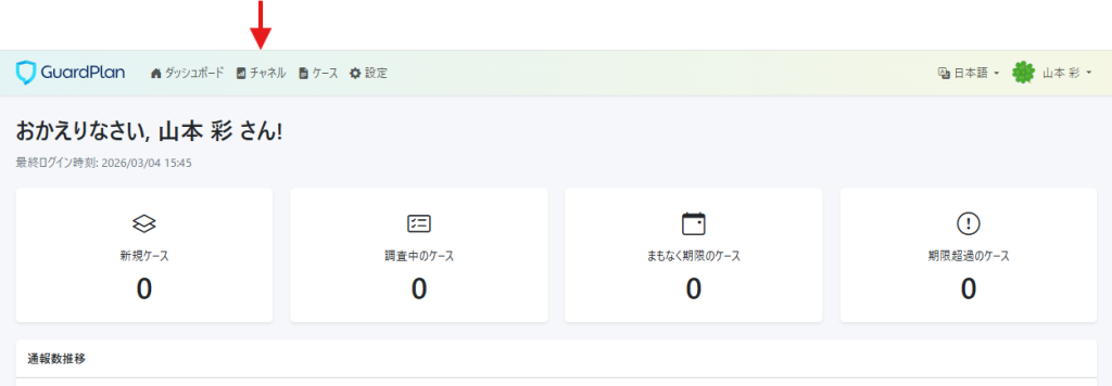 チャネルをクリックしてください。