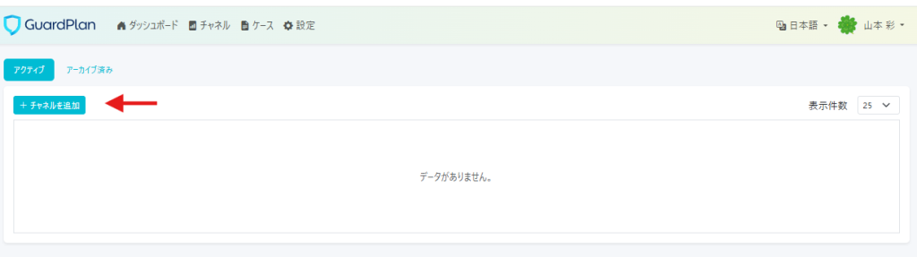 チャネルを追加します。