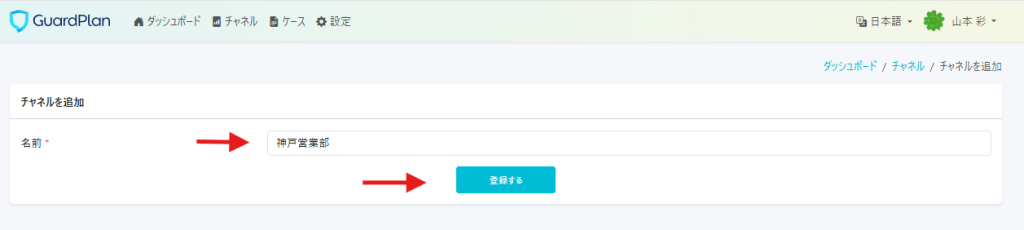 チャネルを登録します。